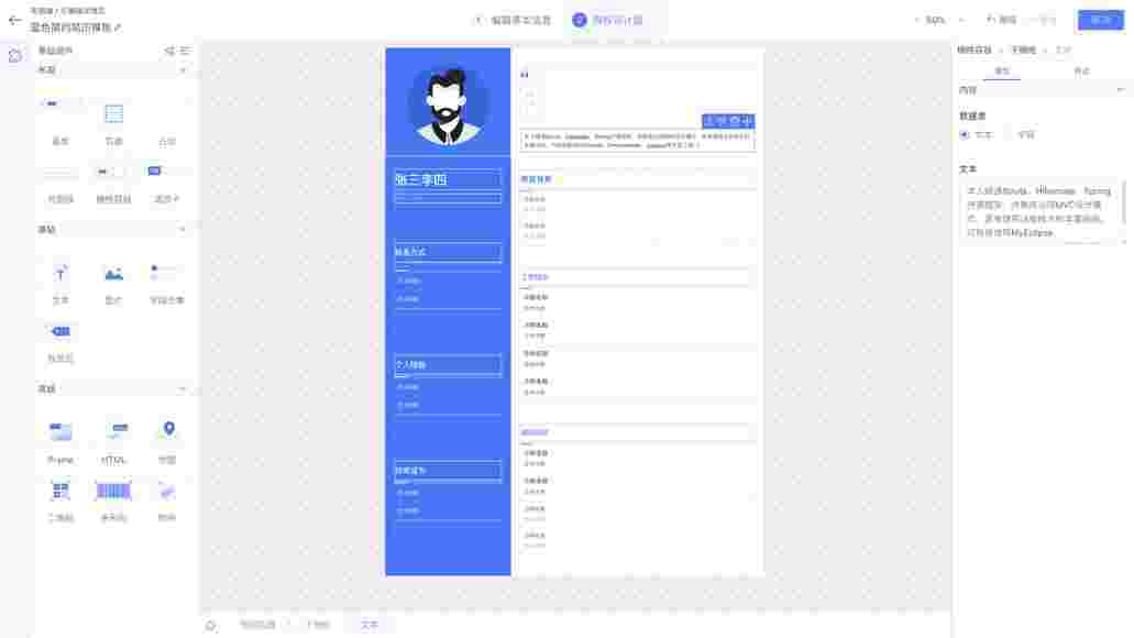 针对简历页面基于设计师平台可以快速设计出多种页面样式,,,满足不同客户的多样化业务需求